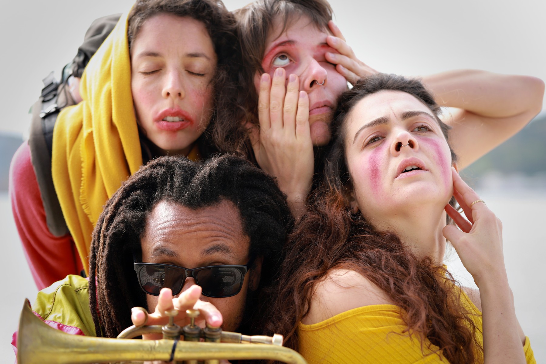 Eight people embark on a great journey on foot. We do not know where they came from, nor where they are headed. They travel to escape a foretold catastrophe. In this resilient, stubborn, and circular movement, they carve out space for imagination and wonder, like a faded circus with melancholic performers, yet full of hope. And they sing.