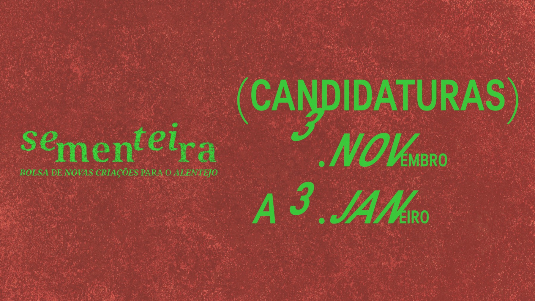 Estão abertas as candidaturas para a 3.ª edição da Sementeira, Bolsa de Novas Criações para o Alentejo da Antípoda em co-produção com O Espaço do Tempo. As candidaturas estão abertas até 3 de janeiro de 2026.