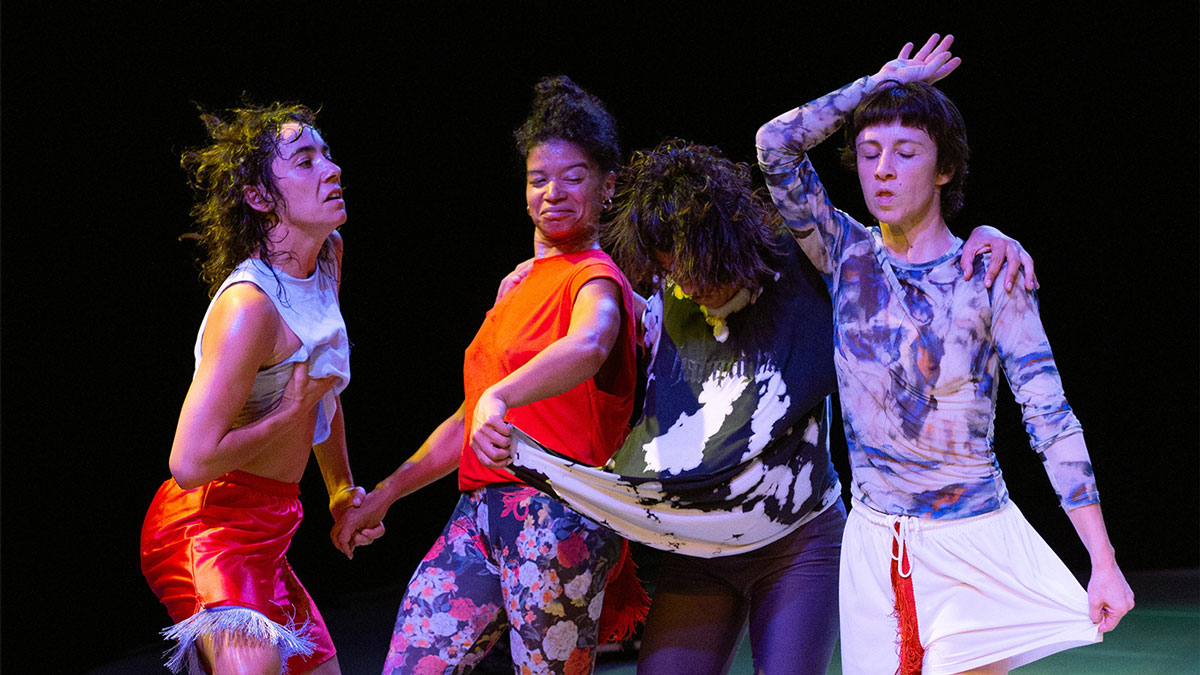 Há este campo nosso, um terreno. Um lugar que contém e também emana, esquenta, e chama. Por vezes, isto é como um confronto com um urso. Somos essas danças-mordidas-de-urso, comidas pelo encontro. Quem chega também poderá atrair-se, ser mordido, talvez tornar-se híbrido também. Movemos ininterruptamente, e aqui estamos porque há de ser sempre em simultâneo, algo que só pode ser gerado quando e se ao mesmo tempo. Enquanto nos acompanhamos, pulsamos. Há tempos que já nos esquecemos como, por isso lembrar deverá ser aqui um gesto de toda invenção.